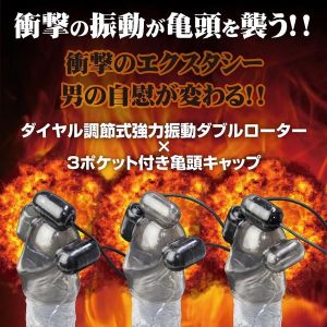 それだけじゃないんだよ、亀頭カップの中に強力ダブルローターが3つも付いていて、亀頭まわりをギュッと包み込んでくれるんだ!「尿○×裏○責め」や「ダブル亀頭責め」など、いろんな刺激が味わえちゃうんだ!ローターの位置で刺激の強さが調整できるから、あなた好みの快感を楽しめるよ!
