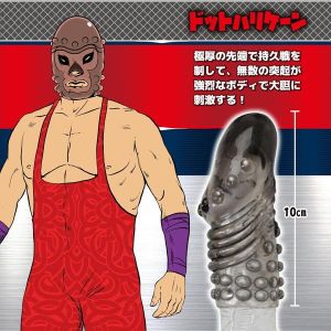 ダイナマイトヘッドとドットハリケーンがセットになってるよ!早くイッちゃうのを防ぎながら気持ちよく攻めてくれるヘッドだって!カリがデカくて、たくさんのいがぐりで攻撃してくれるよ!イッちゃうのが遅くなって、自分のサイズも大きくなっちゃうんだって!そして、パートナーも大満足できるよ!ジョークグッズだから、別のことで使ったら責任は持てないけどね。