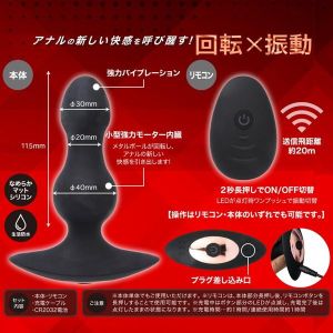ねーねー!ア○ルの新しい快感を見つけたよ!プラグの先端はバイブが強くて、中央にはメタルボールが入っているの。それでア○ルで遊んでいるときに回転して、くすぐったい気持ちもして気持ちいいんだ♪そして、リモコンを持っていると20メートル先でも操作できるから、いろんな場所でお遊びできるよ!マットシリコンで滑らかで生活防水で、USBで充電できるし、振動も8パターンもあるよ!1時間充電して、1時間遊べるよ!本体、リモコン、充電ケーブル、電池が全部入ってるよ!