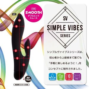 新しいバイブが出てきたよ!G●ポットとク●を一緒に刺激できる「シンプルヴァイブスダブルヒットスムース」だよ!シリコーン素材でやさしく使えるし、ピンポイントで刺激できるから気持ちいいよ。乾電池式で使いやすくて、静かだから深夜でもバレないよ。水にも強いからお手入れも簡単だよ。10種類のモードがあるから初心者でも大丈夫!動作確認用電池ももらえるよ♪