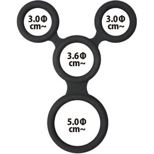 それに、装着感もバツグン!シリコンだから、アレにフィットして、ギュギュッと締まって、快感倍増。そして、このリングの一番の魅力は、クアッドYリングって名前がついているけど、これ、4箇所を同時に締め付けてくれるのよ!うん、根本・玉×2・胴体の箇所をしっかりサポートしてくれるから、持久力もアップして、射○感も最大限まで感じられるの!