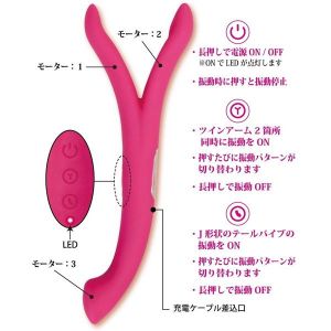 ツインアームがあって、クリや乳首をピンポイントで挟み込んでくれるんだ!それに、Gスポットを刺激してくれるテールバイブがあって、使ったらアクメ必至ってわけ!