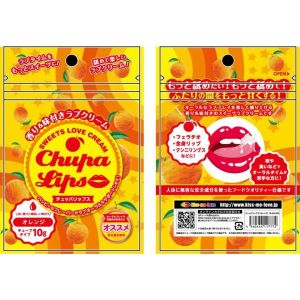 「チュッパリップス」は舐めて楽しいラブクリーム!オーラルプレイで苦手な匂いや味に悩むアナタにオススメ!甘い香りと美味しい味がついたスイーツ感覚で楽しめるよ!フェラや全身リップ、クンニにも使えるし、人体に無害な安全成分で作られてるから安心。ホワイトチューブタイプだから使いやすい!「オレンジ」は柑橘系で爽やか!ふたりの間をもっと甘くしてくれるラブクリームだよ!もっと舐めて!