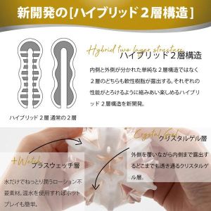 「はいぶりっど2そうこうぞう」でつくられたくりかえしつかえるホールだよ。すぱいらるたいぷはながいとっきがぜんたいにからみつくしげきだよ。ないぶぞうかいすうにはみずだけでねっとりしずむろーしょんふようそざい「ぷらすうぇっち」をさいよう。みずにふれたしゅんかんからしみずはじめます。せいこうなないぶがみえるくりすたるぼでぃのうちがわは、ひものようにほそながくとびだしたぜんしんにからみつくすとりんぐがとくちょうのくりすたるげるそうと、だいしょうさまざまなぶろっくがたのこうぞうがうむめんとてんのしげきがたのしいぷらすうぇっちそうがからみあうはいぶりっどしげき。しようごはみずまたはぬるまゆであらいながしてくりかえしつかえます。またけーすがそのままかんそうすたんどになるのでほぞんもべんり。さらにほーるひょうめんのべたつきやほこりのふちゃくなどをおさえるぽけっとぱうだーもふぞくしています。