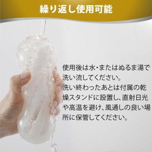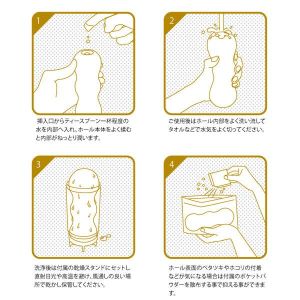 すごいホールあるよ!『フラワータイプ』っていうの!中に水だけでねっとり潤う素材『プラスウェッチ』が入ってるんだって!中がすっごい綺麗なんだよ!『めしべ』っていう花みたいなモノがあって、そこに触れると気持ちいいらしいんだ!洗ったら何回でも使えるよ!ケースが乾燥スタンドになっちゃうから、保管も楽ちんだよ!しかもポケットパウダーがついてるから、汚れも取れるんだ!