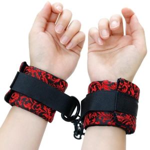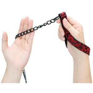 すっごくきれいなプリンセスロックのSMグッズがあるんだよ!赤と黒で彩られて、ベロアの肌触りがやわらかくて痛くないの。マジックテープで簡単に付けられるから使い方もカンタン。手洗いもできるよ。中央ベルト、首枷、手枷が入っていて、手枷だけでも使えるらしいよ♪