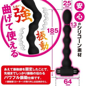 「え~っと、何か特別なポイントはあるかって?それはさ、これは強振動ローターで、振動がすごく強くって気持ちいいの。しかも、さっき言った通り、曲げられるから、アナルの奥まで届きやすくなるんだよ!」