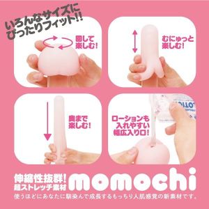 すごいおもしろそう!小さいけどめっちゃ弾力があるよ!『ももち』っていうストレッチ素材で、いろんなサイズにぴったりだよ!中には、カズノコ天井やコリコリイボが入ってて、全部360度まわるよ!日本で作られたものだから安心だよ。一緒に入ってるローションも使うともっと気持ちいいよ!