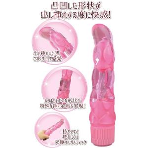 素材がとっても気持ちいい高品質なグッズがあるの。スイッチも使いやすいスライドタイプで調節できるんだよ。そして、一本物タイプのバイブがあるけど、静かで水にも強いからプレイ中に迷惑がかからないの。天使のバイブだけど、Gスポットに合わせるのが簡単な形状になっているの。イボと形状で、とっても気持ち良い刺激ができるよ。電池は単三電池2本使うんだ!