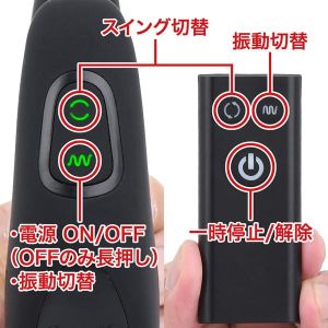 それから、リモコンで操作できるから、体勢を変える必要がないの。快感に集中しやすいのよね〜。挿入しても止まらない強力なスイング機構や会○部への強烈なバイブレーションも、もちろん健在よ!