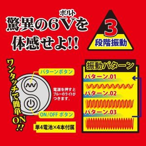 わたしのローター、6ボルトなんだって!振動がハンパない感じで、振動好きなお姉さんたちにオススメだよ!3段階のシンプルな構造で、すごいんだ!単4電池が4本ついてくるから、すぐに使えるよ!