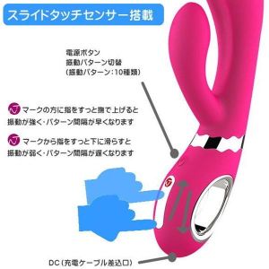 そうじゃない?それだけじゃないんだ!私、3つのランブルモーターを搭載しているから、先端・真ん中・子機と、あらかじめプログラムされた振動パターンがループするよ!スピードも調節できて、なんと10種類の振動パターンが楽しめちゃうわ!さらに、汚れてもご心配ナシ!メディカルグレードシリコン素材を使っていて、お肌にも優しいの!